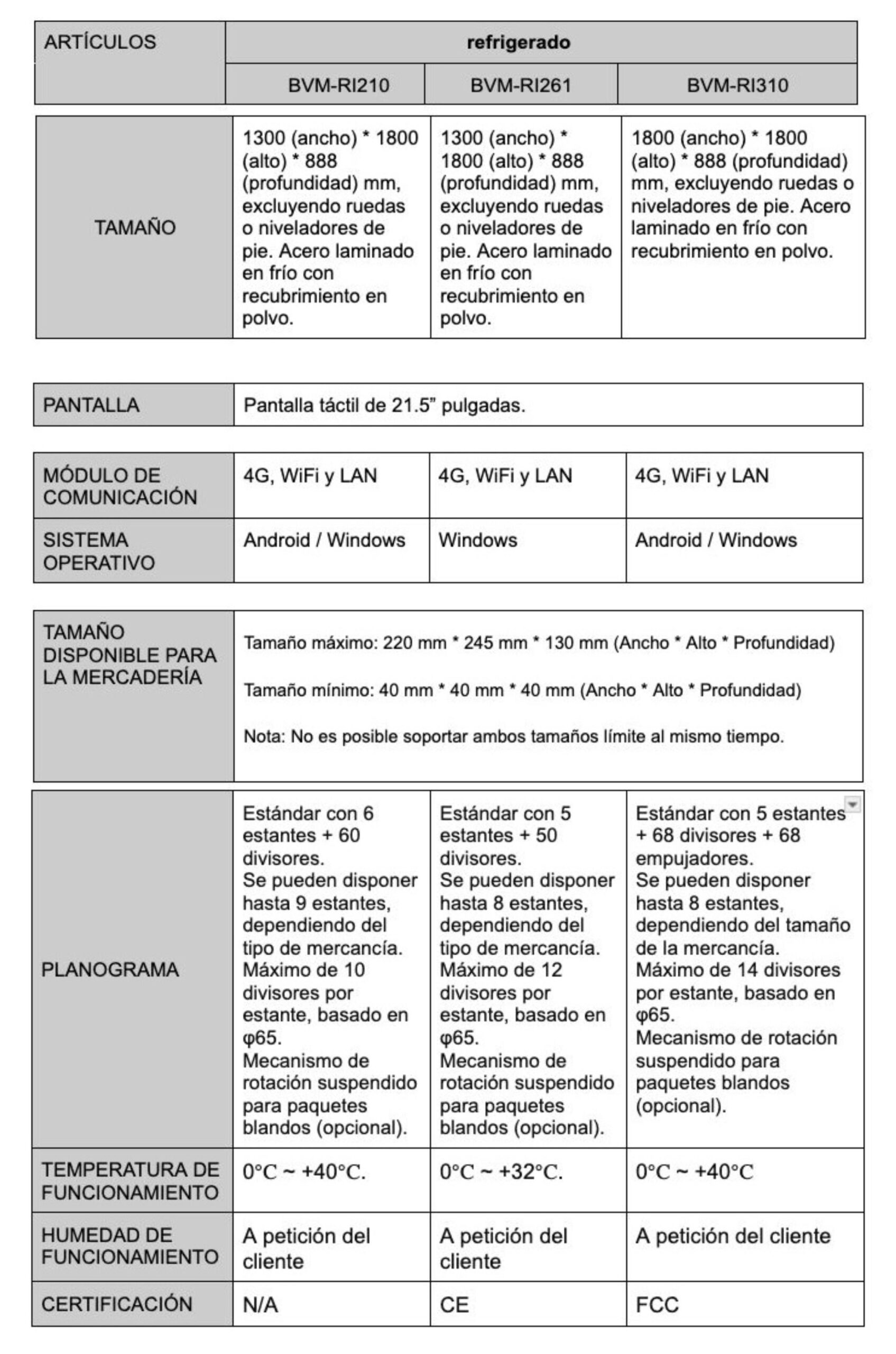 - Adaptabilidad de ventas: Ajuste sin herramientas. La variedad de productos vendidos puede cubrir hasta el 80% de los productos típicos de las tiendas de conveniencia.